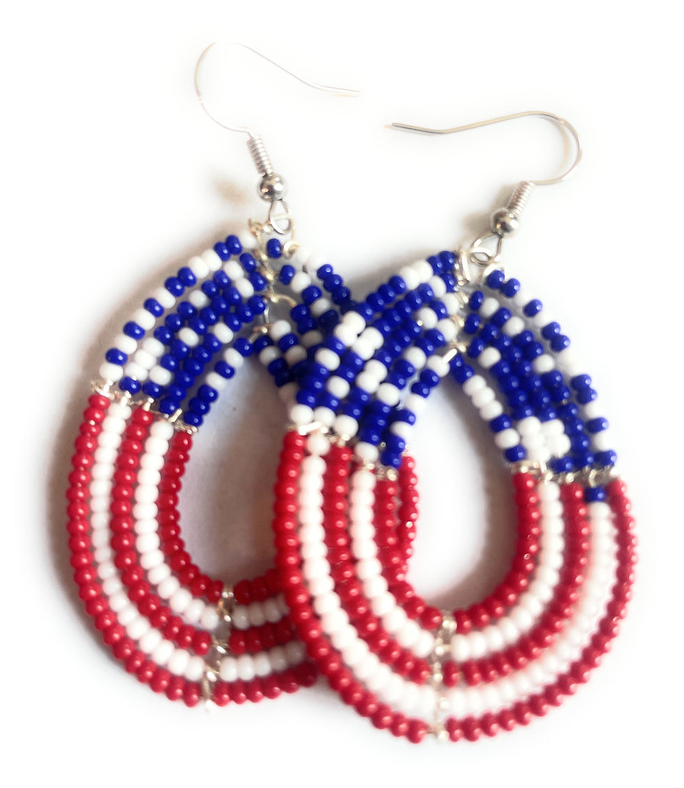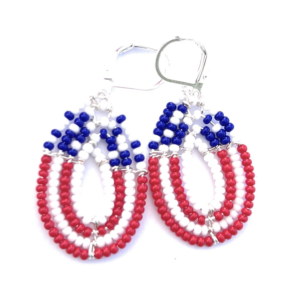 Maroon & White Beaded Hoop Earrings for Game Day boho spirit
