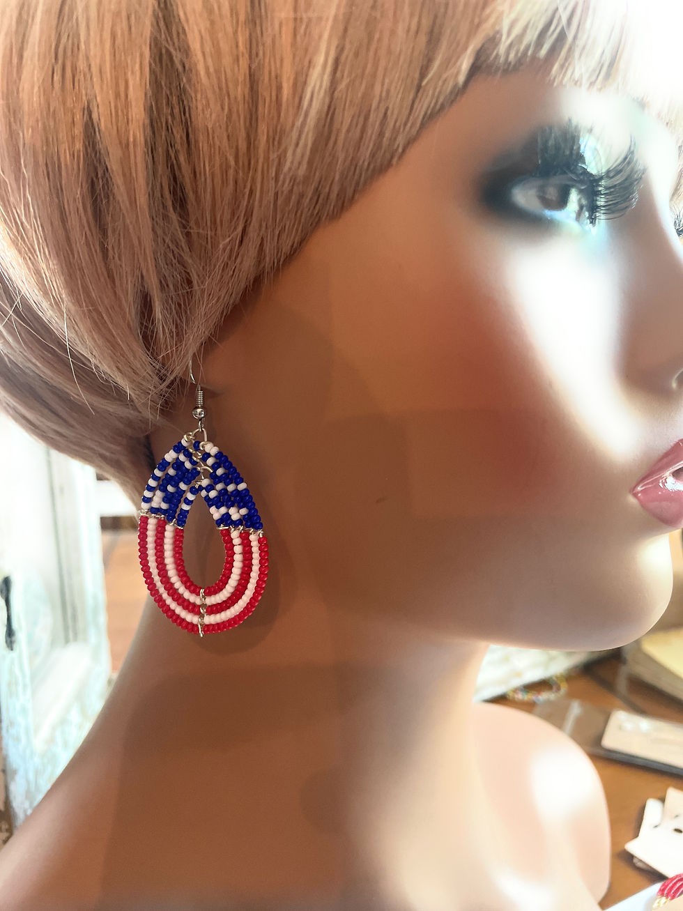 Maroon & White Beaded Hoop Earrings for Game Day boho spirit